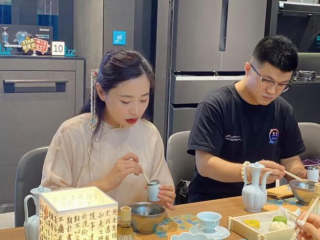 在“宋代点茶”课程中,学员们可以了解到宋代点茶的历史背景和文化内涵,学习点茶的技巧和方法。刘翊箴会讲解如何使用茶筅击拂茶汤,使茶汤表面形成细腻的泡沫,以及如何欣赏点茶的艺术美感。为了增强教学的趣味性和互动性,书院还配套了AR教学系统,可以还原宋代茶宴场景。学员们通过AR设备,仿佛穿越时空,置身于宋代的茶宴之中,亲身体验宋代茶文化的繁荣。